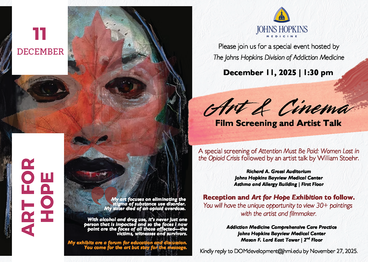 A special screening of "Attention Must Be Paid: Women Lost in the Opioid Crisis" followed by an artist talk by William Stoehr.